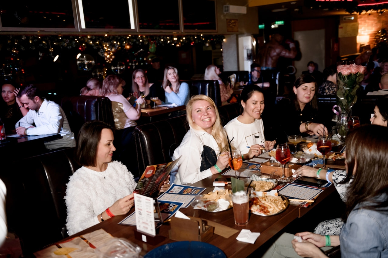 Мы проводим мероприятия в клубах, ресторанах и барах, точное количество мест зависит от площадки: от 80 до 200 гостей. Заранее столики не бронируются, рассадка осуществляется на входе на мероприятие